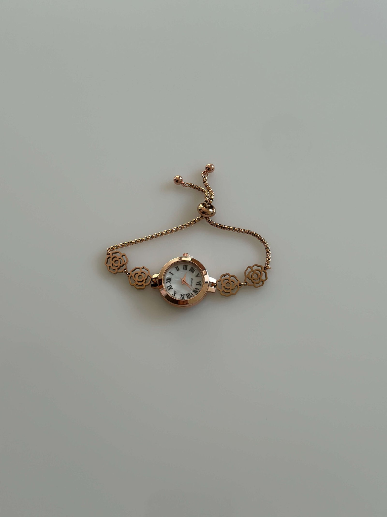 Finished with a classic Roman numeral dial and an adjustable bolo clasp for the perfect fit, this piece seamlessly blends romantic femininity with sophisticated functionality.